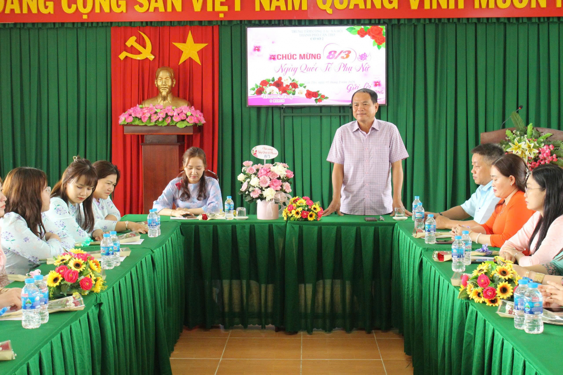 Phát biểu tại buổi họp mặt, ông Lê Văn Cao – Phó Giám đốc Trung tâm phụ trách Cơ sở 2 đã bày tỏ sự đồng cảm đến các chị em đã phải làm việc vất vả trong môi trường độc hại, nhưng vẫn luôn cố gắng chăm chỉ hoàn thành tốt nhiệm vụ. Ông nhiệt liệt biểu dương và ghi nhận những nổ lực cùng với sự đóng góp tận tâm của các chị em. Mong rằng các chị em sẽ phấn đấu hơn nữa để trở thành những bông hoa xinh đẹp, tỏa hương sắc tô điểm cho cuộc sống thêm tươi vui.