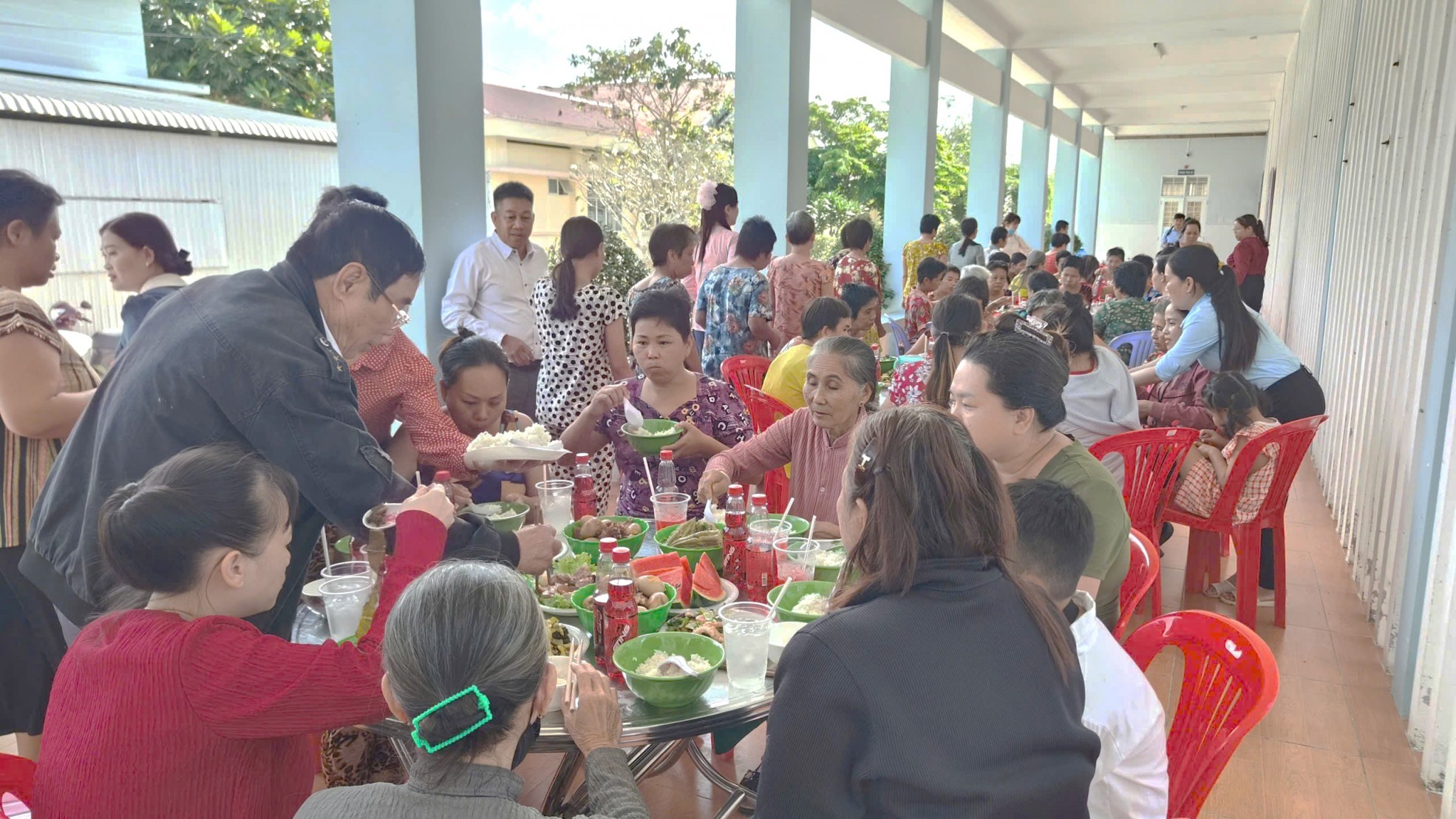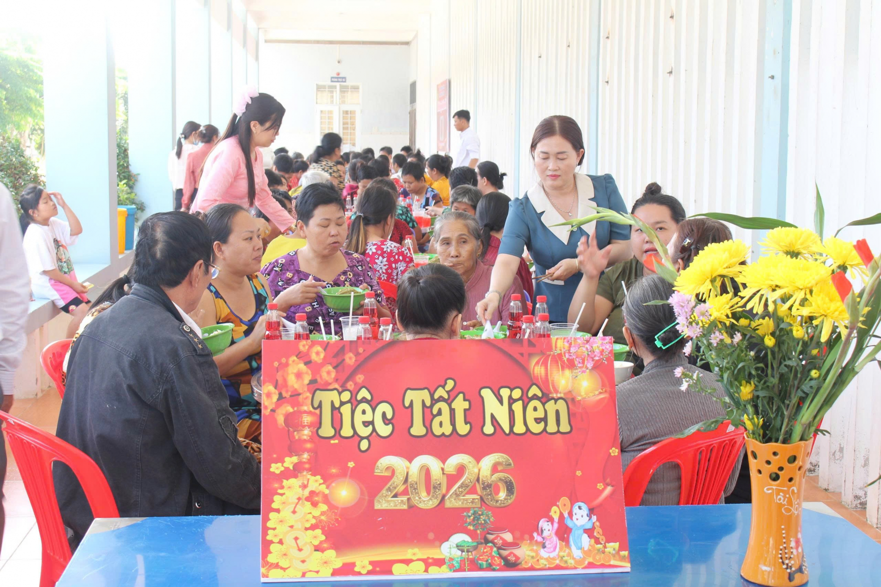 Quang cảnh tiệc tấc niên cho các đối tượng đang được chăm sóc, nuôi dưỡng